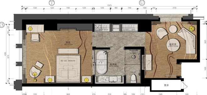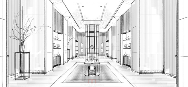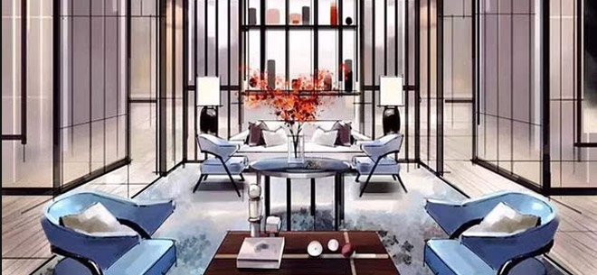 通过速写的方式表现空间的设计和布局,是实际工作中常用的一种表现方式。把握好空间透视和比例的关系,通过讲解实景图片的比例关系和家具造型来练习。